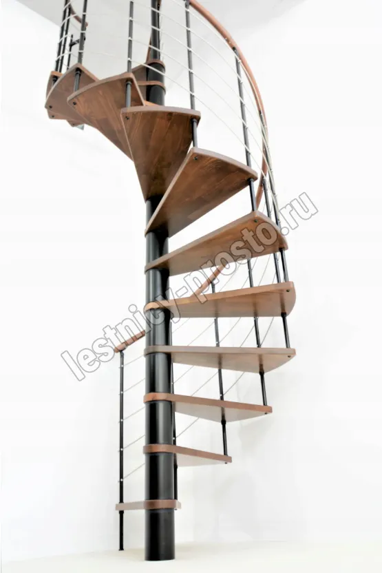 Деревянные ступени и поручни  изготовлены из массива дерева и покрыты специальным лаком от компании Минка, который предотвращает царапины, сколы или стирание поверхности при интенсивном использовании лестницы.