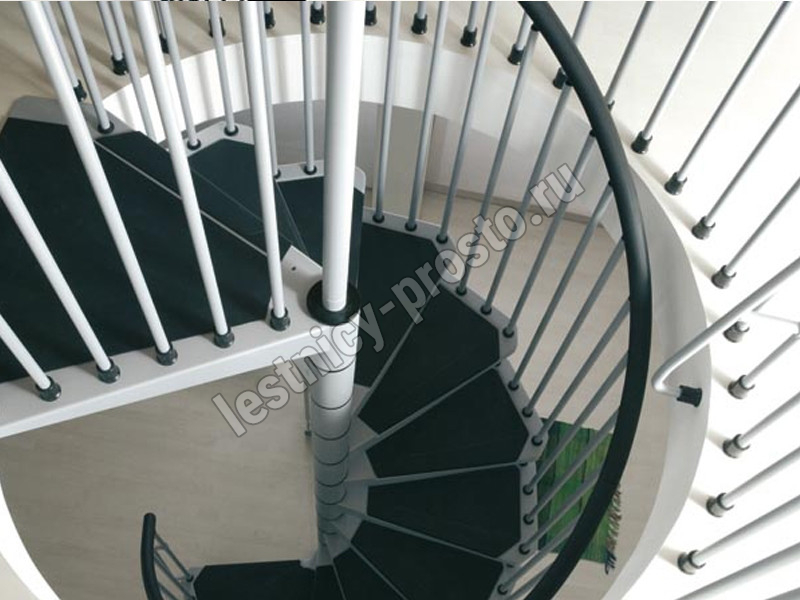 Отделка лестницы всегда в черном цвете. Перила из полиуретана с алюминиевым сердечником черного цвета, как и износостойкие нескользящие панели на ступенях.