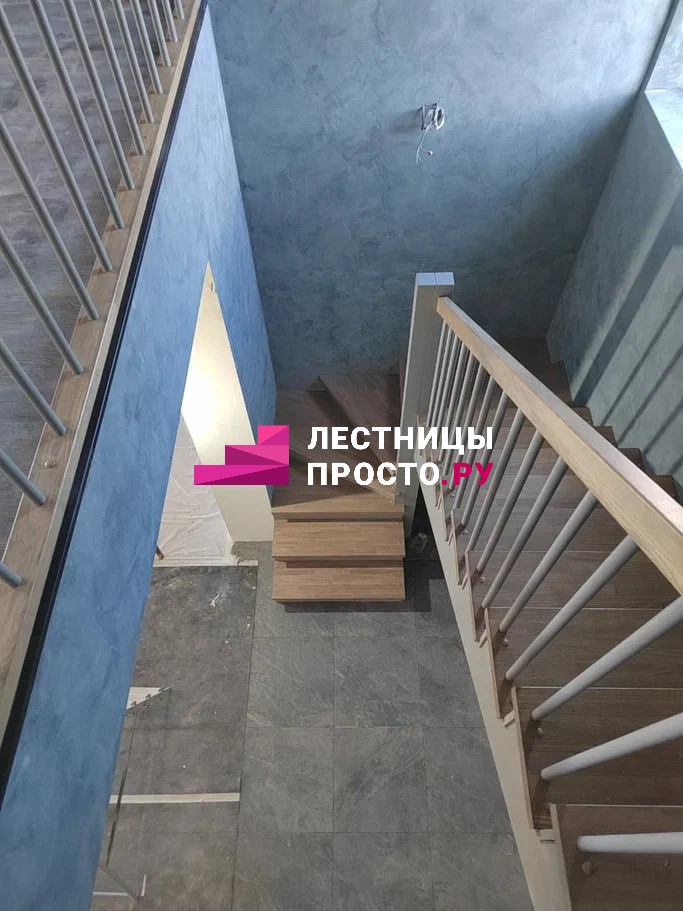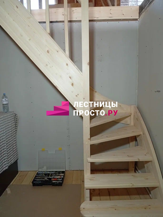 Г-образная лестница из сосны для частного дома ЛС-07/4